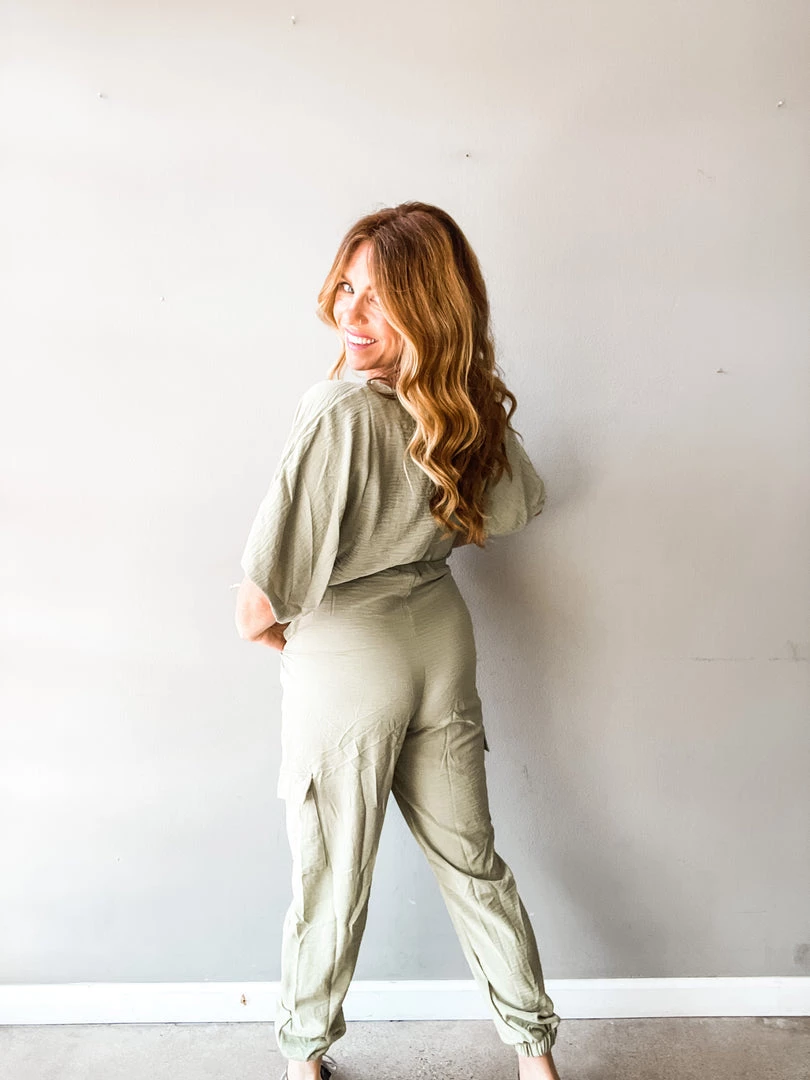 The Right Way Jumpsuit is a great chic jumper with a criss cross v neckline (snap for more coverage), side pockets, and an elastic hem line at the ankles. Such a flattering fit and perfect summertime piece! Love it paired with sneakers or sandals!!!
