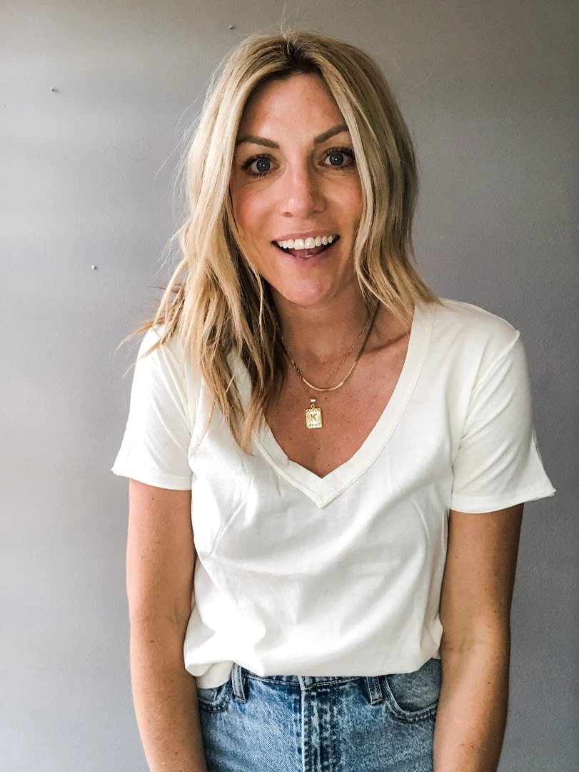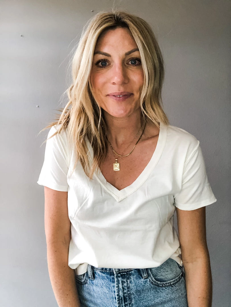 A great basic v-neck tee in a 100% organic cotton. This relaxed fit tee is great paired with denim or worn for lounging. A year round staple you will reach for time and time again.