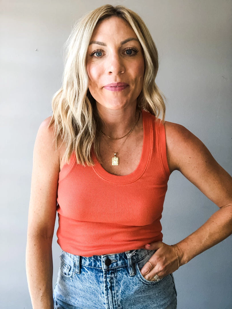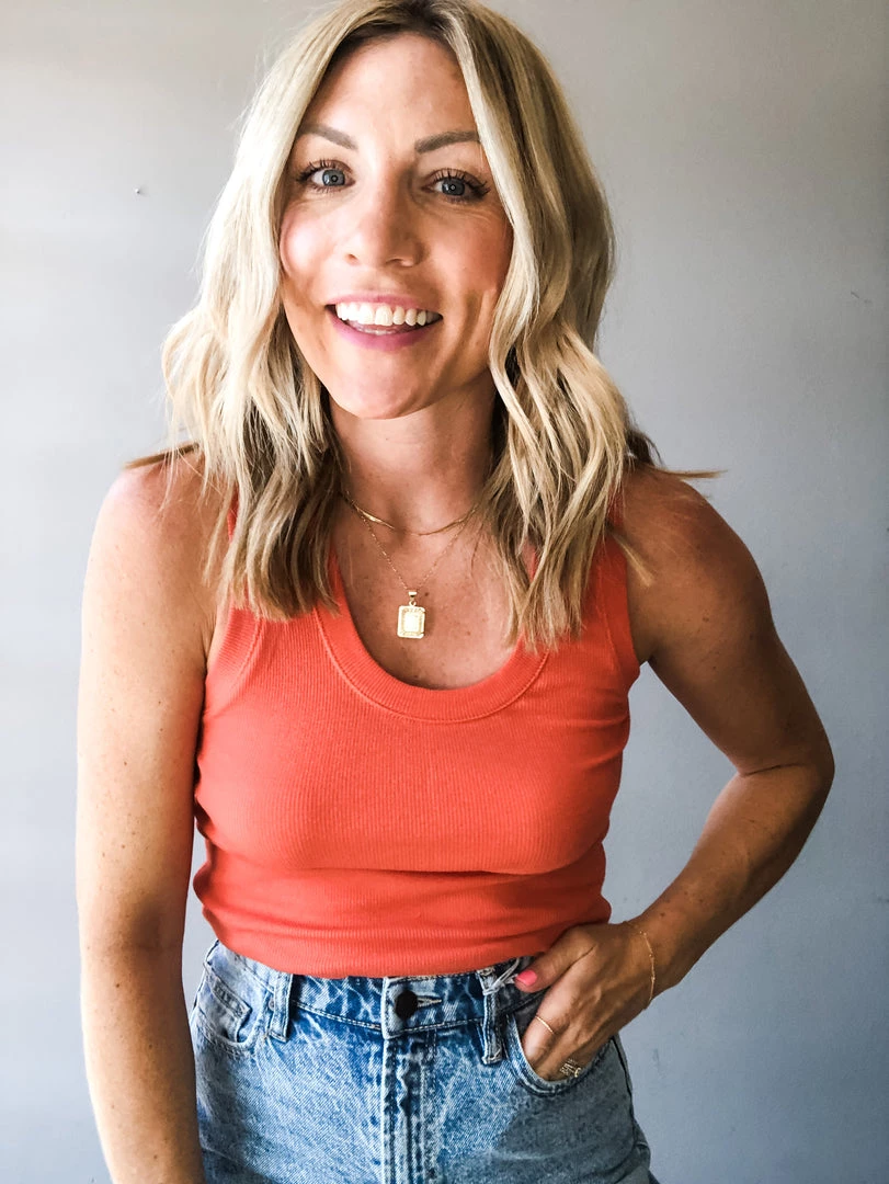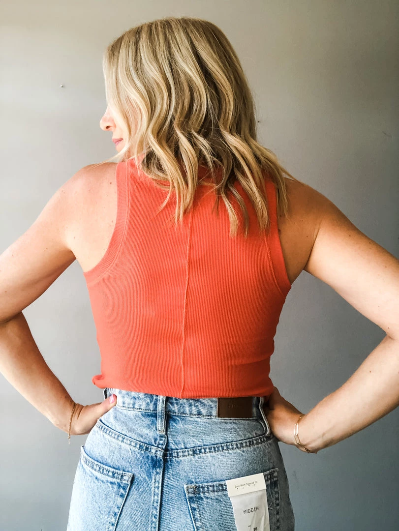 A cotton spandex rib knit tank that is a summer staple! Layer under overalls or pair with high waisted denim. This tank is so easy to pair and wear year round.