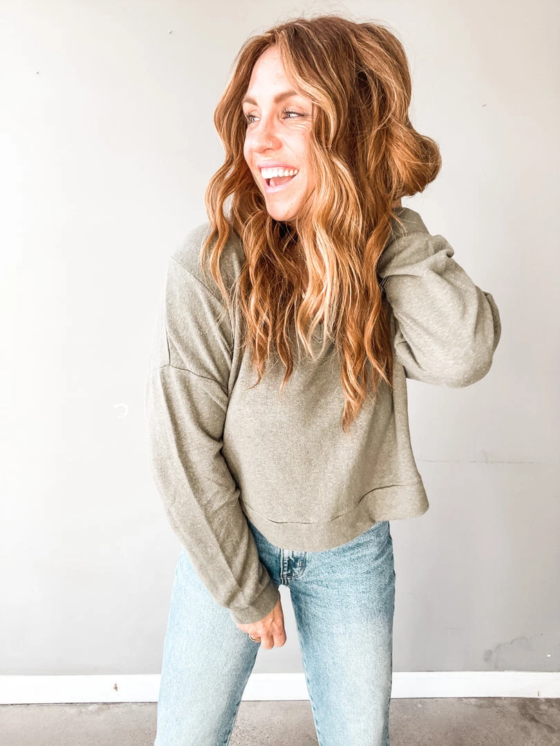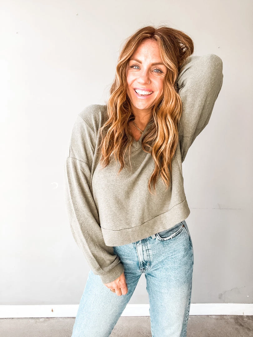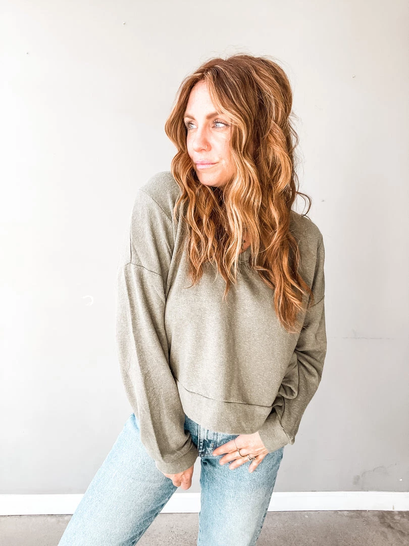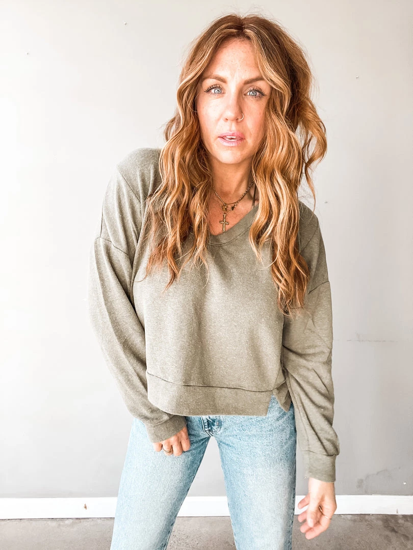A new twist creates an exciting new style! Made using a soft French Terry fabric the Skimmer Weekender features a v-neck design and split side seam with a step hem in a new fresh shorter silhouette. It looks so good with denim!