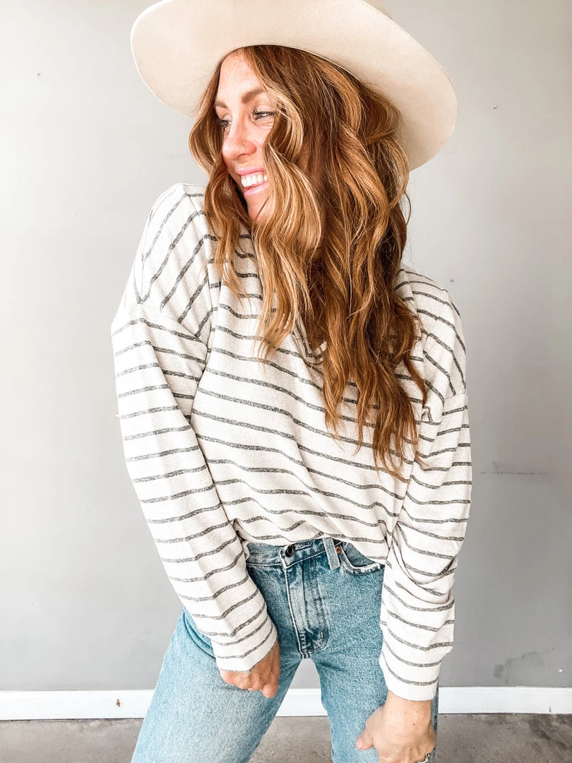 Just add stripes! The Stripe Skimmer Weekender won’t disappoint. It gives you an easy way to layer over your favorite tank and we love it with denim.