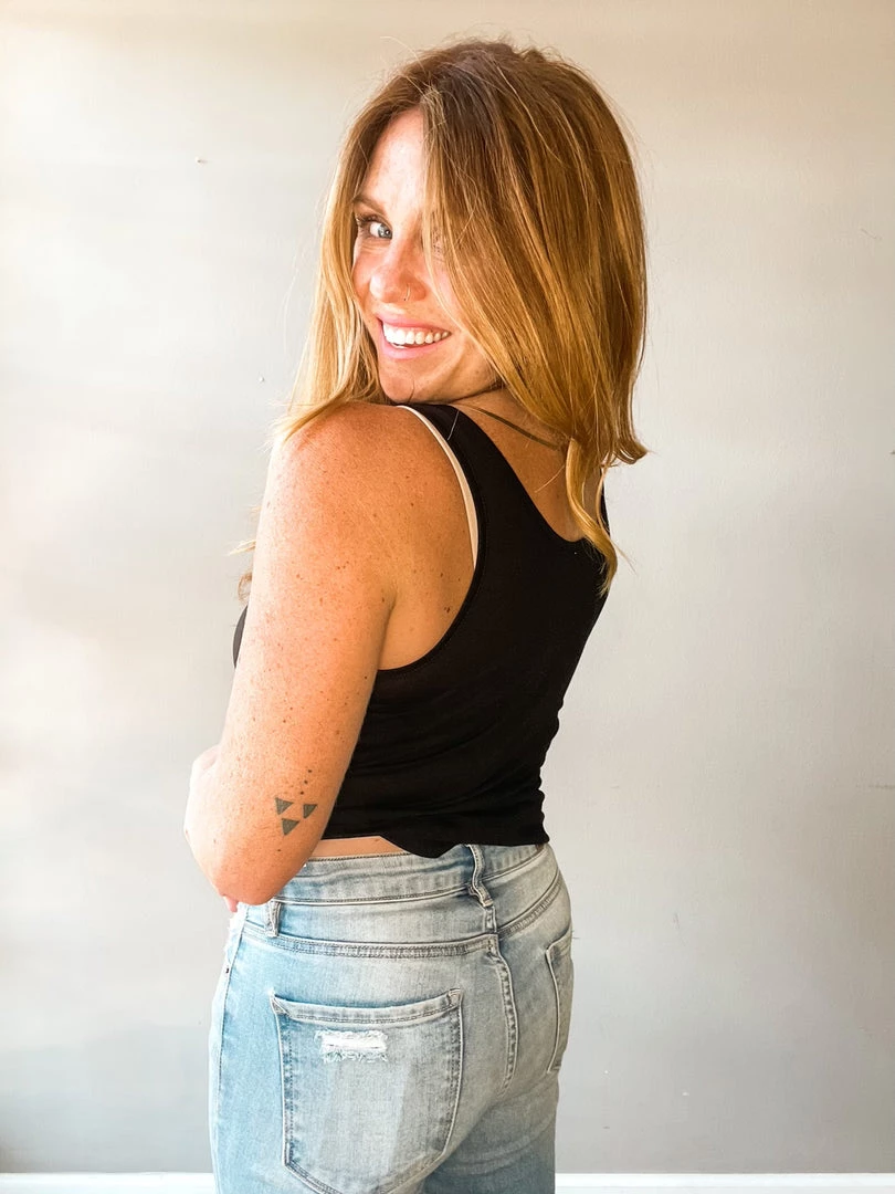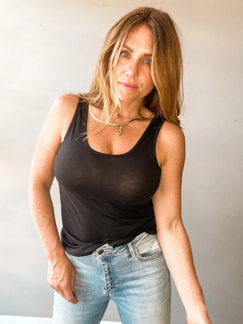 A classic staple that can literally be paired with anything! Made from a super soft 100% cotton jersey fabric, the easy tank features a scoop neckline and rounded hem. Wear with your go to jeans, layer under a jacket or lounge on the couch, we guarantee you will fall in love with this tank.