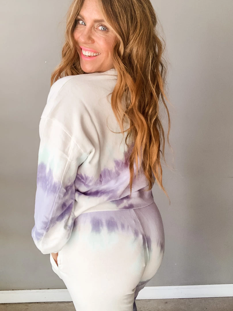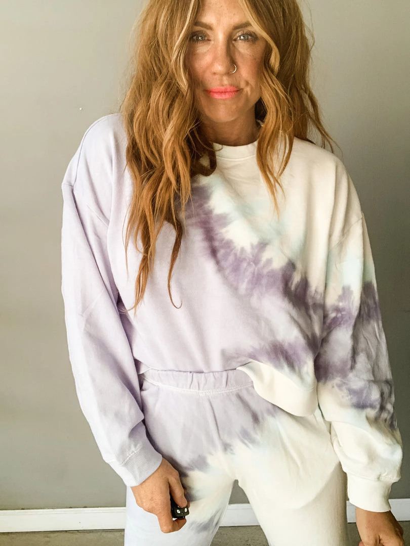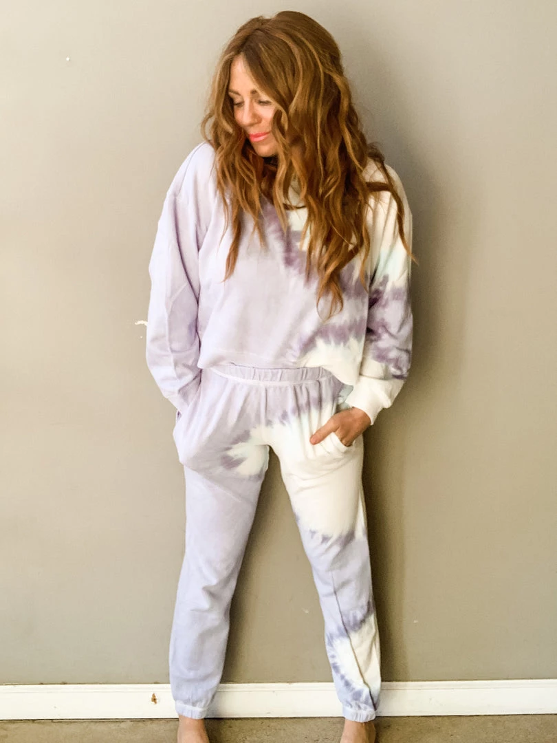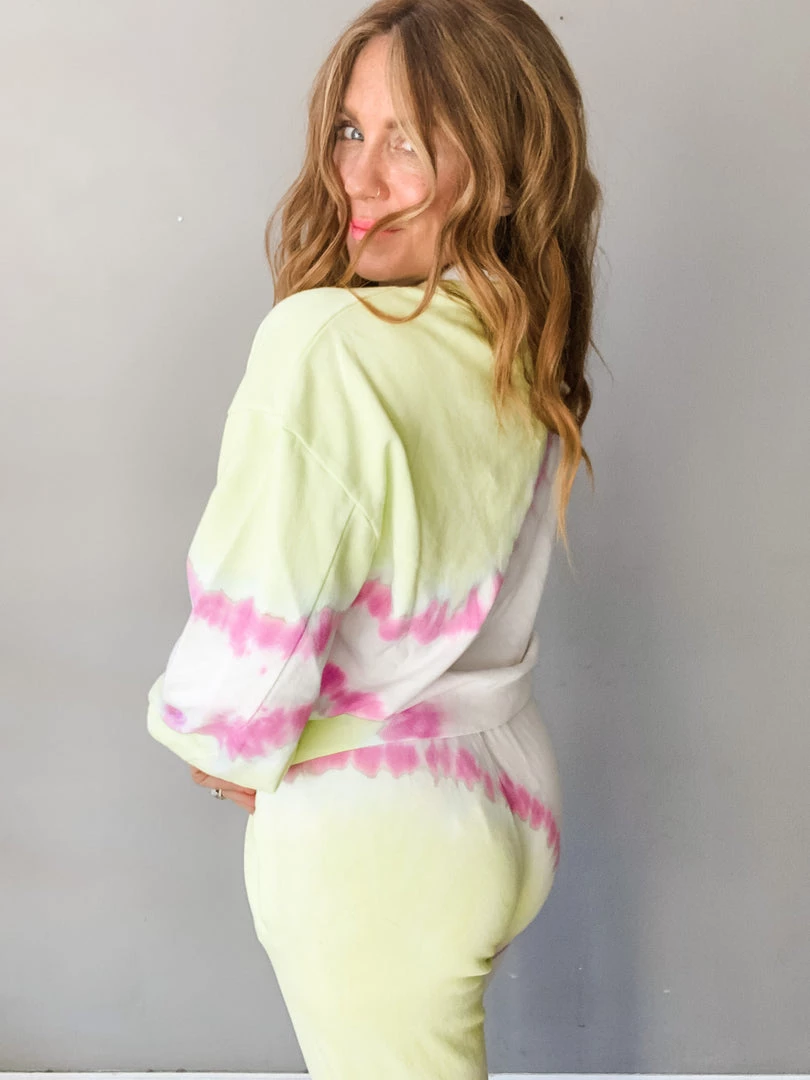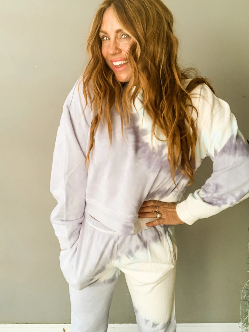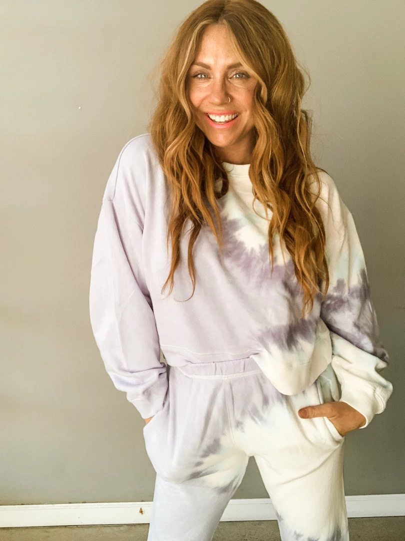 The Sunburst Tie Dye Jogger is a DELICIOUS, very cozy jogger style sweat pant with side pockets and a thicker elastic waistline and ankle hem. A fun starburst tie print, available in two colorways. Fits true to size.