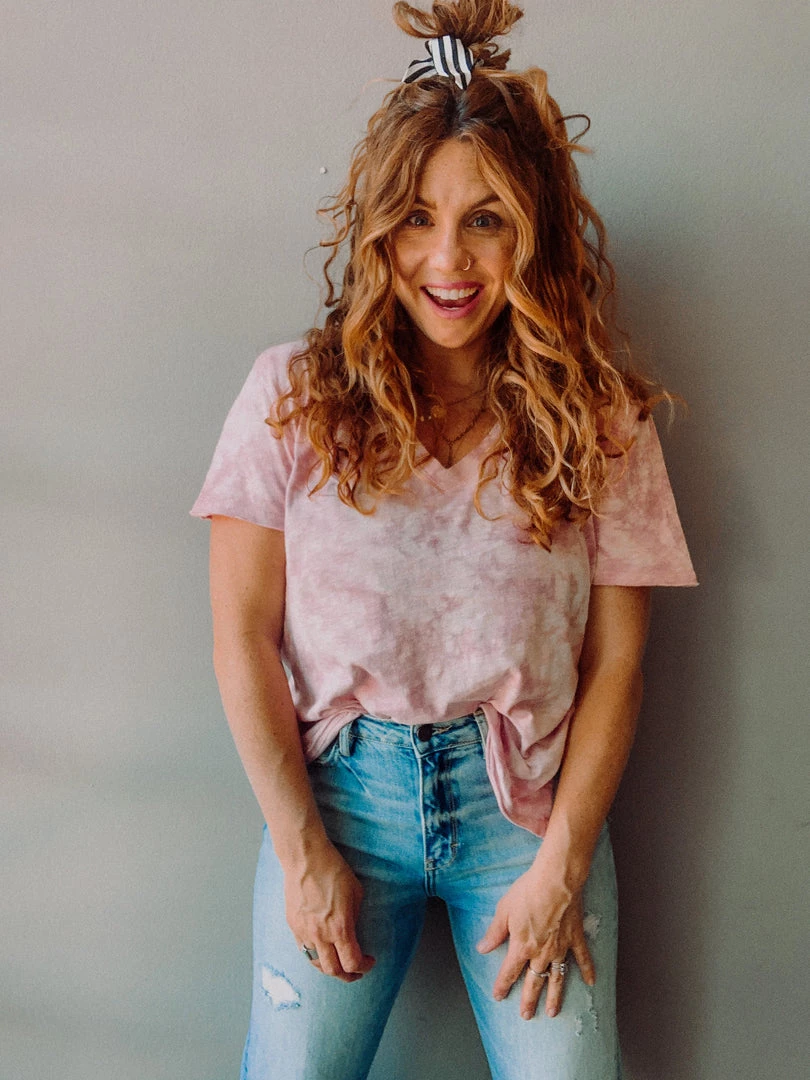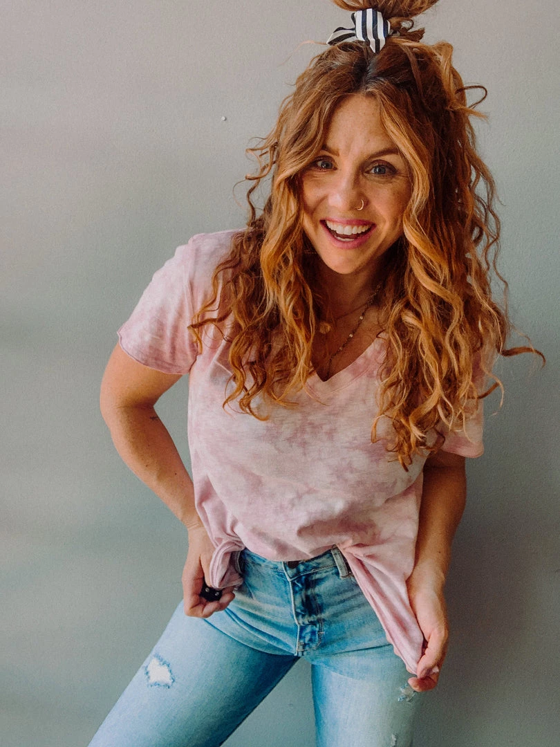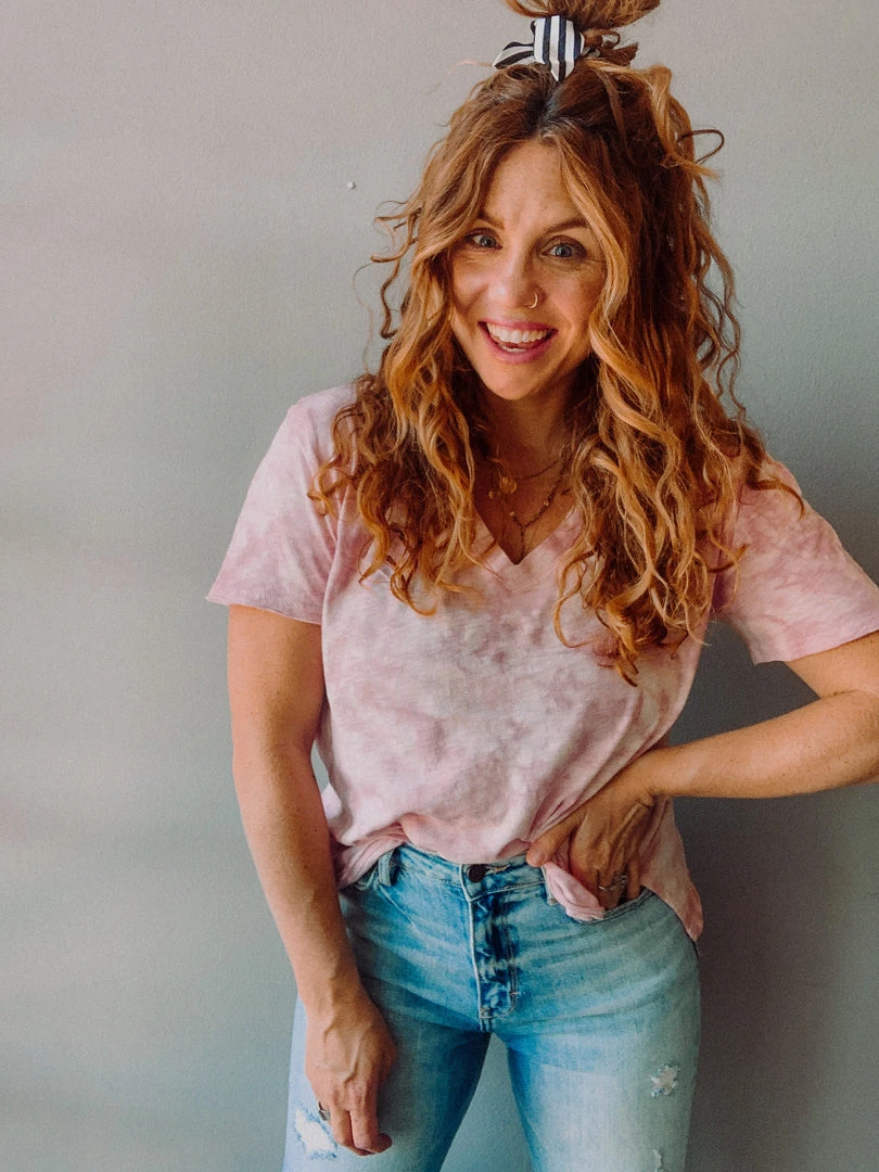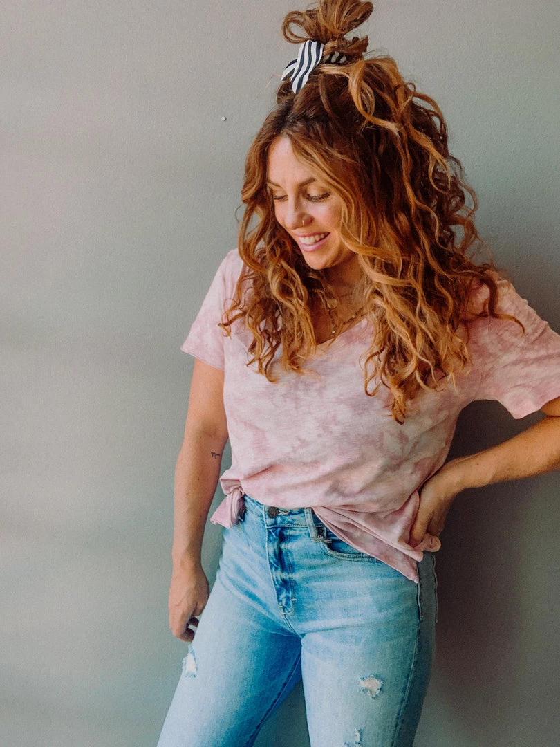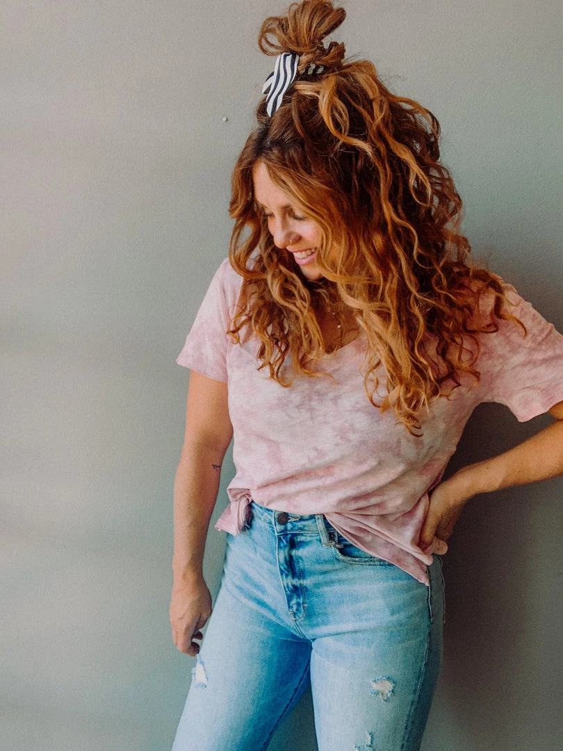 We’ve been on the hunt for the perfect tie dye lounger tee and we finally found it!!! This blush/mauve tie dye v neckline tee is a super blousy fit and cozy as could be. The fabric is soooo soft. A great tee to work out in, tuck into your high rise denim, or rock with cutoffs and under overalls. So many good options for this pretty little basic. I said it was soft, right? I can’t repeat that enough. BUTTER.