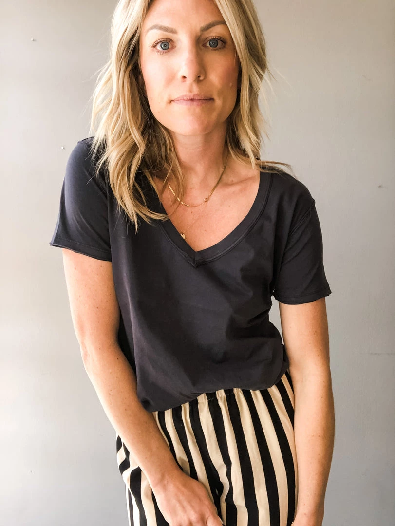 A great basic v-neck tee in a 100% organic cotton. This relaxed fit tee is great paired with denim or worn for lounging. A year round staple you will reach for time and time again.