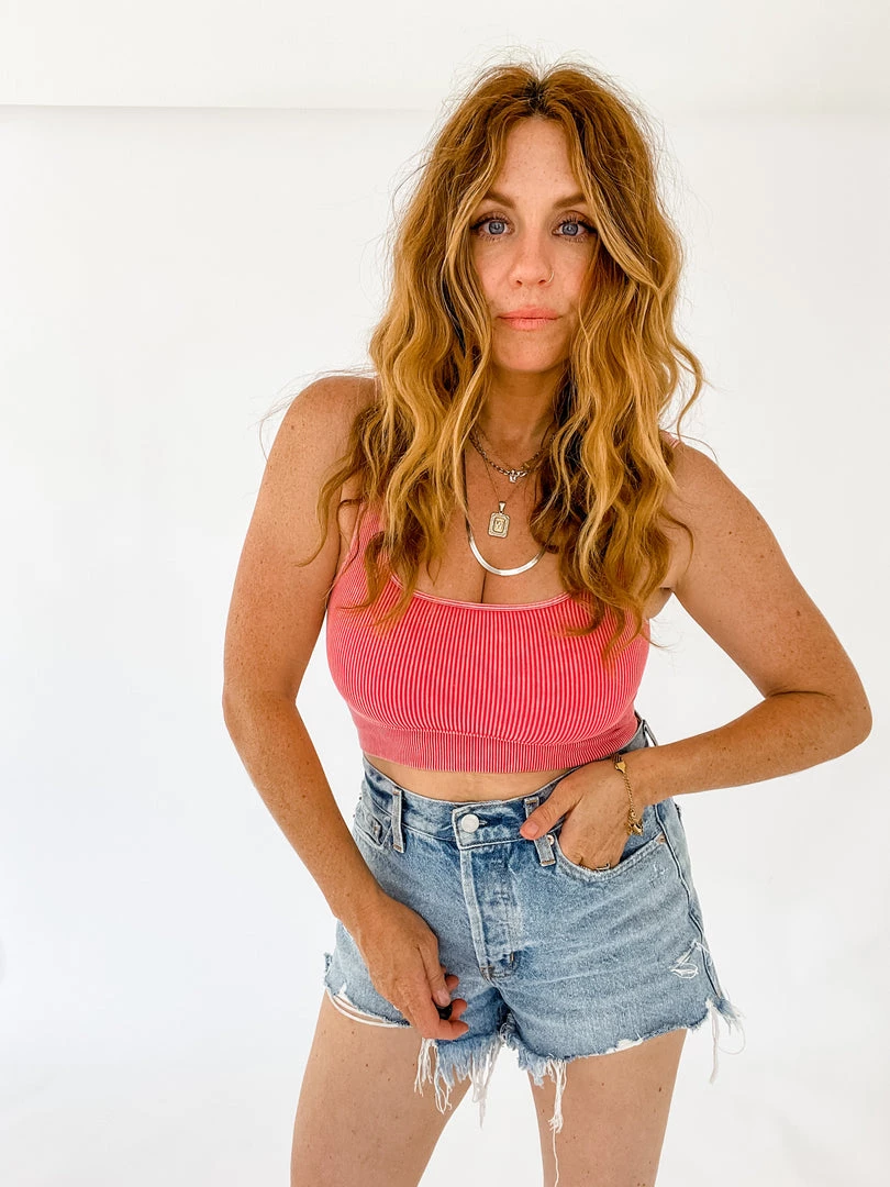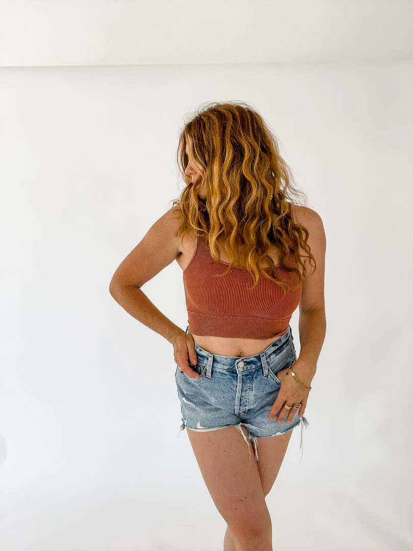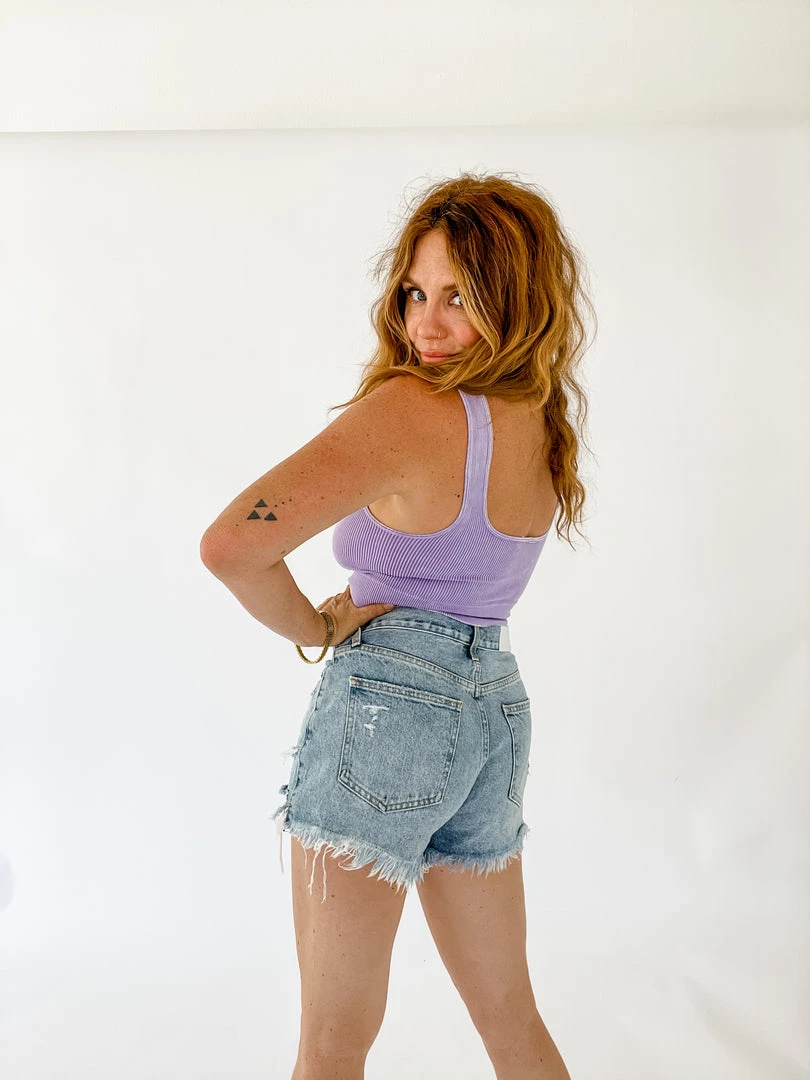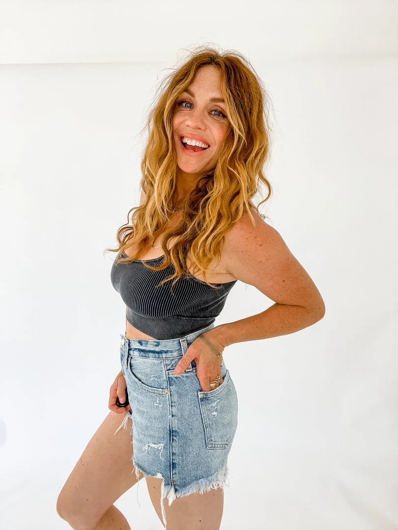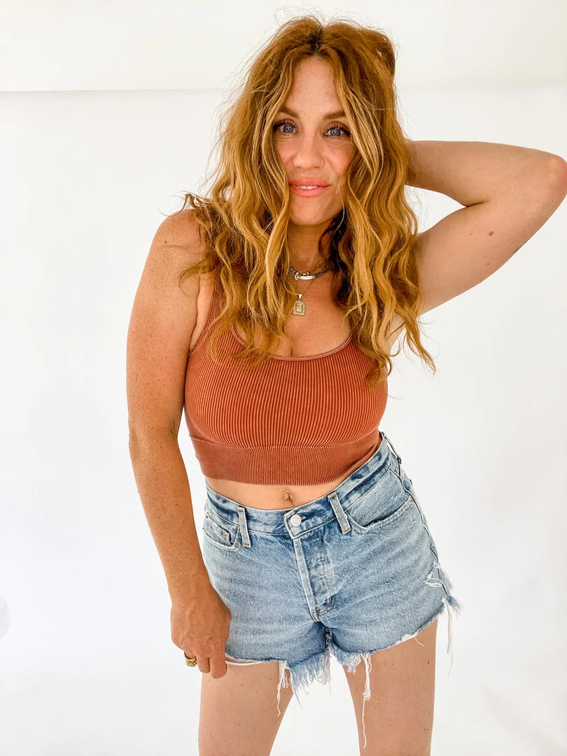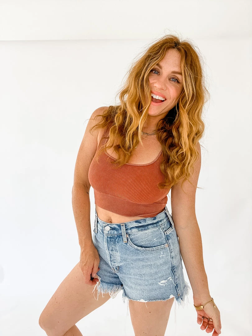 The Sun Seeker Cropped Tank is so good we got it in every color!! A super yummy ribbed crop with thick tank straps and a wide band in the hem. We love it for low impact activities like yoga or lounging around the house or dressed up with some high waisted bottoms and sneaks or slides.