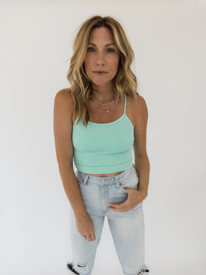 The Sundowner Cropped Tank is so good we got it in every color!! A super yummy ribbed crop with spaghetti straps and a wide band in the hem. We love it for low impact activities like yoga or lounging around the house or dressed up with some high waisted bottoms and sneaks or slides.